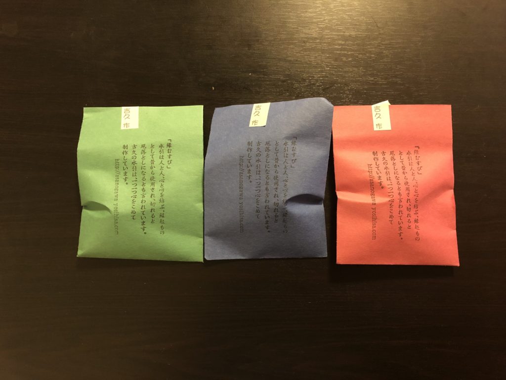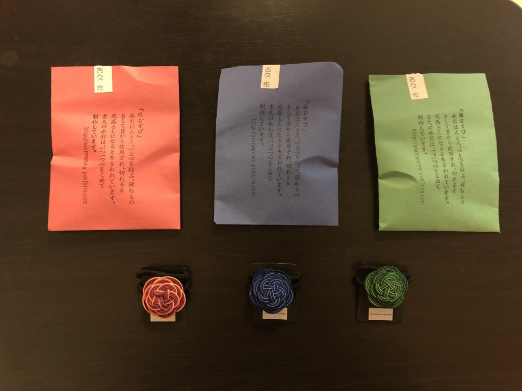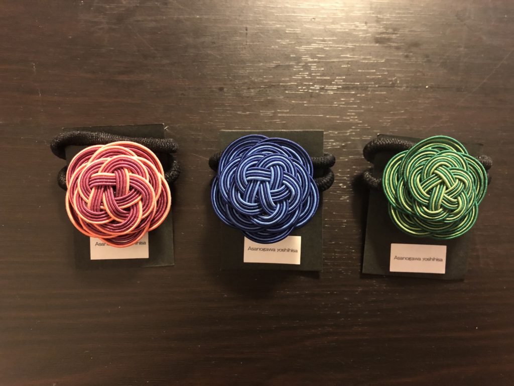 金沢の伝統工芸「水引飾り」を製作・販売している浅の川吉久の水引ヘアゴムです。ヘアゴムということで、水引をより身近で楽しむことができますね。