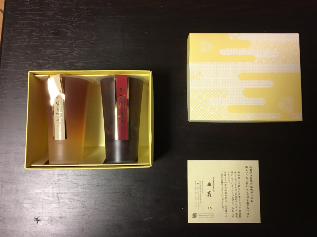 森八は寛永2年(1625年)と400年も昔に和菓子屋として創業されました。そんな森八の和のゼリーシリーズとして、加賀の棒茶を練り込んだゼリーと生姜を練り込んだ冷やし飴のようなゼリーは、どちらもすっきりとした夏に合うお味になっています。