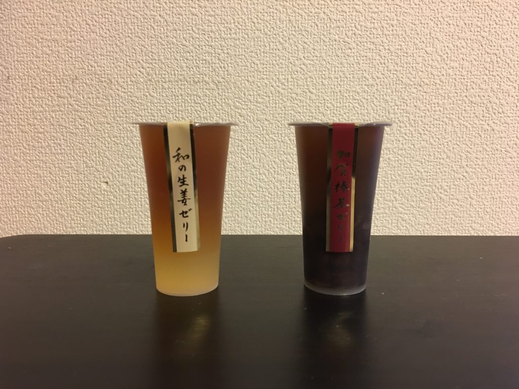 森八の加賀棒茶ゼリー、和の生姜ゼリーです。画像は加賀棒茶ゼリー、和の生姜ゼリーですが、能登の宝ゼリーというお菓子もあります(能登の宝ゼリーはグッド石川ブランドにも選ばれました)