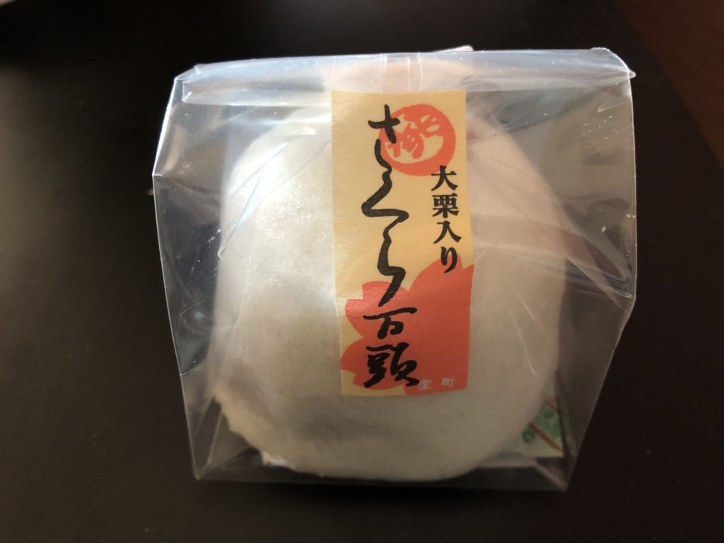 石川県金沢市にある和菓子屋「清香室町(せいかむろまち)」のさくら万頭です。秋の栗と春の桜を合わせることで、「勝負運を開花させる」ということに願をかけた和菓子となっています。