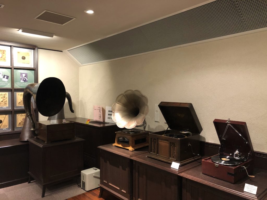 館内はアンティークな建物になっており、蓄音機の歴史も学ぶことができます。