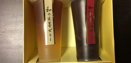 森八の加賀棒茶ゼリー、和の生姜ゼリーです。画像は加賀棒茶ゼリー、和の生姜ゼリーで